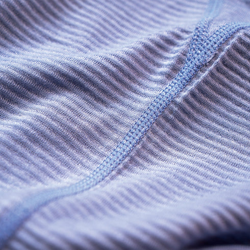 我們一直在尋找一種就算是在春夏大量流汗的行動中也能舒適穿著的美麗諾布料,而答案就是:將美麗諾羊毛與回收聚酯混紡的 ALL ELEVATION 專屬布料。