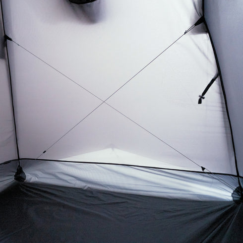 AX系列的內帳短邊內側配置了內帳導繩。這起到類似預製建築中常見的加固支撐的作用,可以抑制來自長邊方向風的帳篷變形。