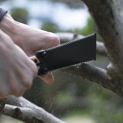 僅有手掌般大小的蝴蝶鋸,採用了日本鋸的傳統製造方法,高硬度碳鋼所製成的刀片,經特殊氟塗層處理,大幅減少了的摩擦係數,