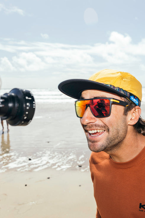 這款遮陽帽採用低調的4片式設計,略微彎曲的帽簷,黑色內襯可減低眩光,並配備KAVU調節式尼龍編織帶。