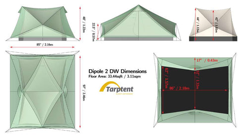 The patent-pending Dipole 2 DW is made with silicone-coated polyester and offers unparalleled interior usable volume with sit-up and lie-down room for tall people and the longest, widest, thickest pads. It is ideal for trekking pole users who want the ultimate lightweight protection without compromising useable interior space. Elegant and sturdy, the Dipole 2 DW will fit the confines of any pack and gives you the freedom, security, and comfort you want for a wide range of conditions.